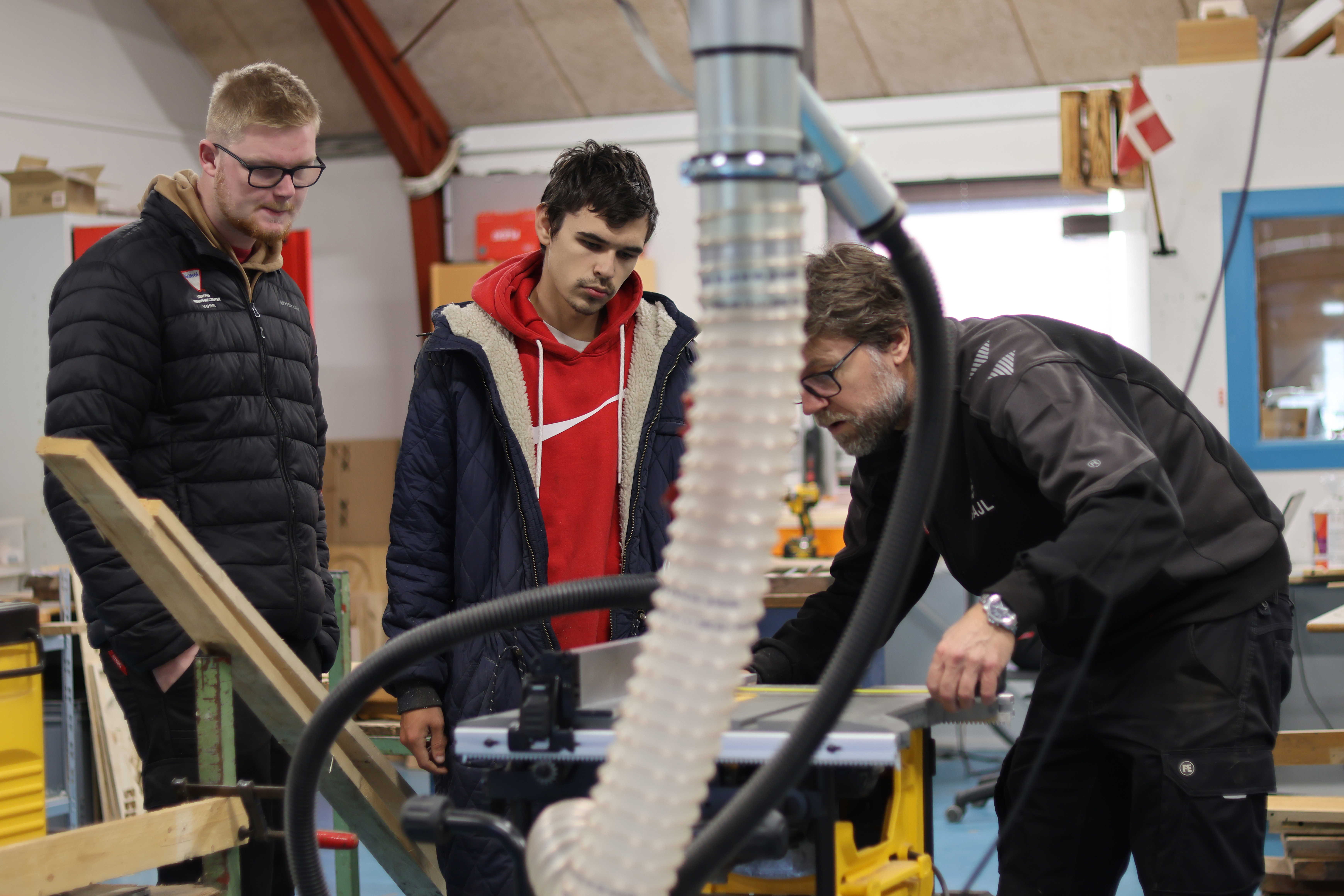 Bygge- og vedligeholdelsesopgaver er også en stor del af hverdagen på holdet. Vi istandsætter lokaler, laver inventar og producerer til salg i vores butik. Yderligere har vi forskellige renoveringsopgaver i kommunen, ligesom vi også hjælper med kulisser til ungdomsskolens musical