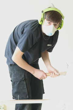 Bygge- og vedligeholdelsesopgaver er også en stor del af hverdagen på holdet. Vi istandsætter lokaler, laver inventar og producerer til salg i vores butik. Yderligere har vi forskellige renoveringsopgaver i kommunen, ligesom vi også hjælper med kulisser til ungdomsskolens musical